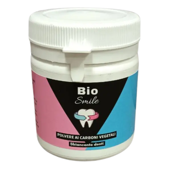 Bio Smile è una polvere dentale specificamente formulata per aiutare a rimuovere le macchie dai denti e migliorare l'aspetto del sorriso. Questa polvere agisce delicatamente sulla superficie dentale, contribuendo a sbiancare i denti e a ridurre le macchie causate da caffè, tè, fumo o altri fattori esterni. È un prodotto utilizzato principalmente per chi desidera mantenere un sorriso più luminoso e più pulito, senza ricorrere a trattamenti invasivi o costosi.