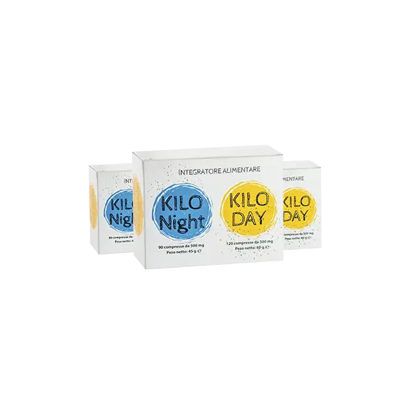 Kilo Day & Kilo Night sono disponibili in forma di compresse rivestite. La confezione comprende 120 compresse per la formulazione diurna (Kilo Day) e 90 compresse per quella notturna (Kilo Night), progettate per un uso temporaneo e mirato al supporto del percorso di perdita di peso.